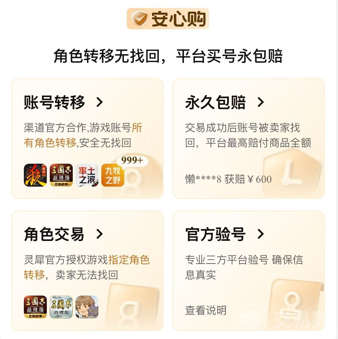 为什么说它靠谱呢?它是行业唯一一个全场赠送永久包赔的平台,只要是平台内在售的成品号都享受永久包赔,并且最高可以赔付账号全部金额。用户购买价值昂贵的账号再也不用提心吊胆,只要被找回平台就会根据订单来快速处理赔付给大家。