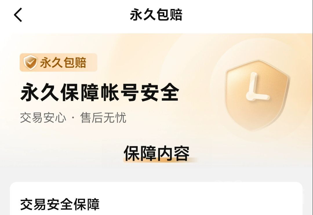 安全第一就体现在永久包赔服务,每个卖家在挂售商品的时候,平台都会引导性的询问是否要牺牲账号出售利益的一小部分为买家赠送永久包赔服务,也就是账号一旦被找回的话,平台客服将会在7个工作日内协助找回游戏账号,如果找回失败的话则由平台客服直接最高全额赔付100%;而对于那些没有赠送该项服务的自己如果特别喜欢的话,也可以额外支付永久包赔费用,想玩多久玩多久。