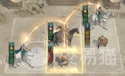 实战部署需紧扣骑兵特性与生存平衡。马超虽具追击机制,但不可前置部署。将其置于前排虽能加快切入速度,却极易因承伤过高而首轮减员,直接削弱后续两回合爆发强度。合理站位为中排——由前排承担初始火力,保障马超存活至爆发期;中排位置既维持其追击触发效率,又确保伤害输出不受站位影响。
