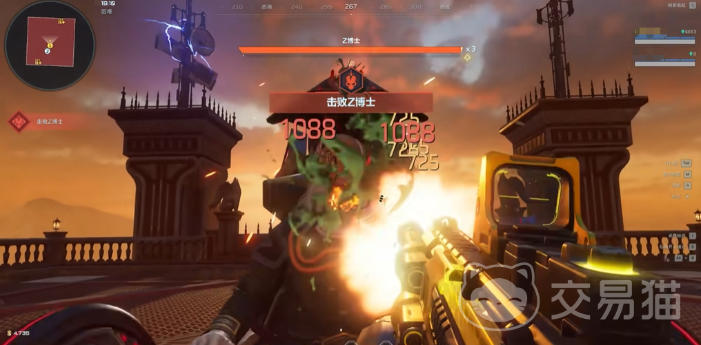 第二阶段首领为Z博士,镇守副本最终关卡。战斗发生于封闭环形平台,玩家行动受限于场地边界。Z博士初始阶段完成病毒注射后,体型膨胀为巨人形态,共激活三种核心攻击逻辑:第一类为直线连续冲撞,沿平台直径方向发起3次高速位移,路径上留有明显光效提示;第二类为毒液喷射,落地后形成持续5秒的腐蚀区域,地面同步浮现红色预警圈,半径约2.2米;第三类为环形激光扫射,共释放4道同步旋转光束,单圈周期为3.8秒,需预判节奏并利用平台中心空隙完成穿插闪避。