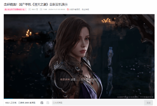 截止至11月24日,《湮灭之潮》B站官号发布的新实机演示播放量已突破563万次,并且仍有600余人正在观看,玩家对游戏的喜爱仍未消退。