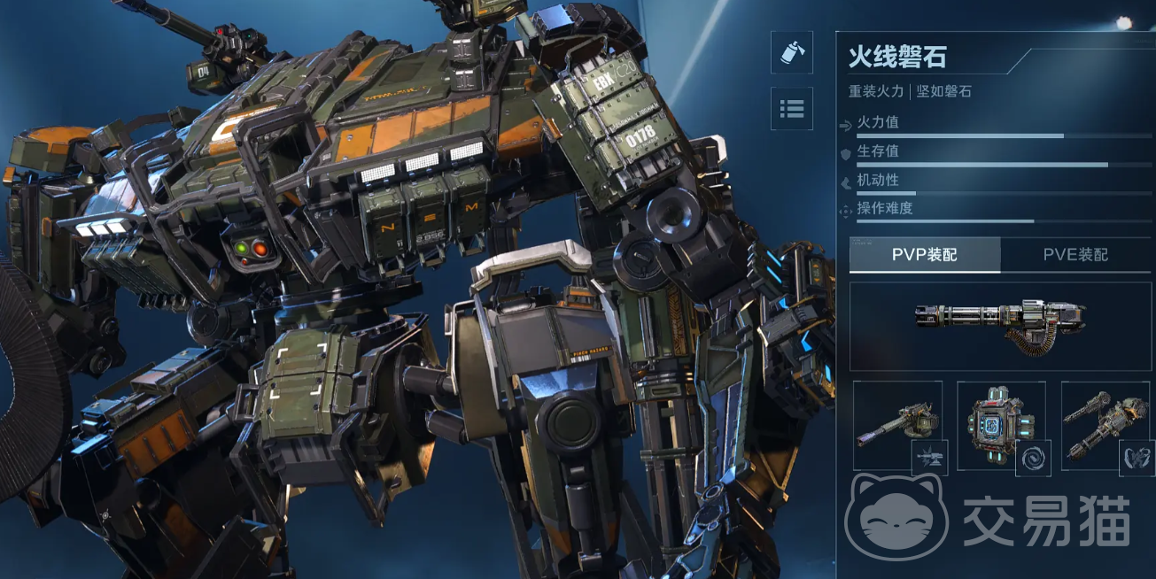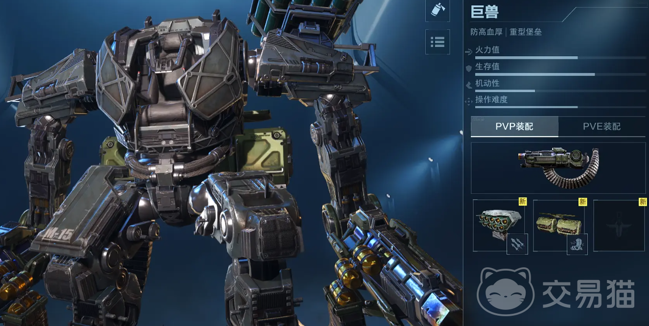 拥有全机甲序列中最高的基础生命值与物理抗性,是前线抗压与阵地推进的核心载具。主武器为重型加农炮,具备范围溅射伤害(AOE),但射击间隔较长,弹道存在明显飞行时间,命中依赖预判与提前量计算。整体上手难度最高,需熟练掌握目标移动轨迹预测、掩体利用及装填节奏管理,适合追求高风险高回报、擅长重装推进打法的进阶玩家。