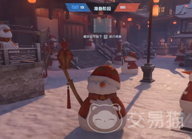 玩法采用四局制回合对抗机制。每局开始前系统随机分配角色:3名玩家担任“躲藏方”,1名玩家担任“追逐方”。躲藏方拥有30秒准备时间,在地图中选择掩体并完成拟态(雪人地图中化身为雪人,熊猫地图中化身为熊猫);追逐方需在3分钟倒计时内识别并击中所有伪装目标。胜负判定依据为单局内双方淘汰人数总和,淘汰数更高的一方获胜。