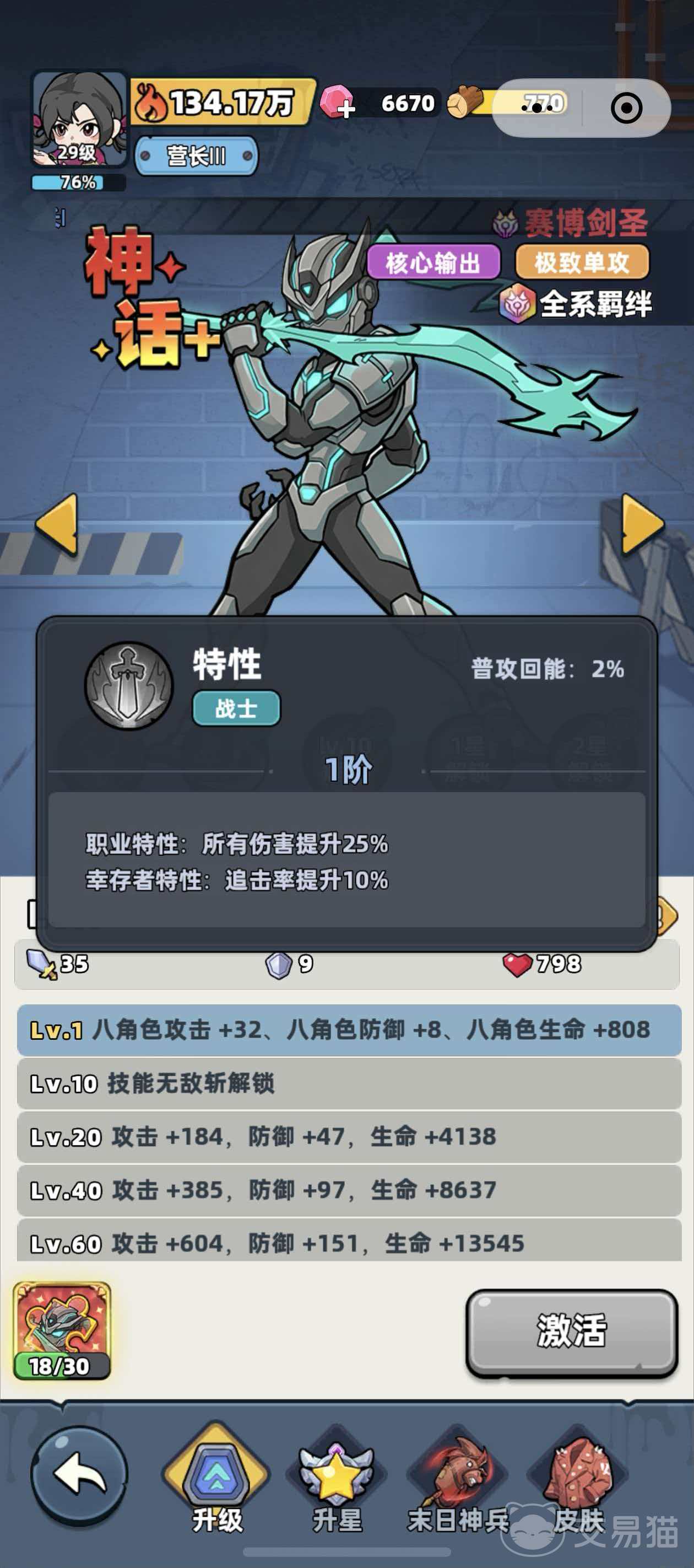 综上所述,赛博剑圣并非概念化标签角色,而是具备明确机制深度与实战上限的高阶输出单位。其强度表现高度依赖基础养成完成度,未达神话3星前难以体现设计初衷。玩家若计划长期投入该角色,务必前置规划资源分配,确保星级与追击率双达标,方能充分释放其战术潜力。