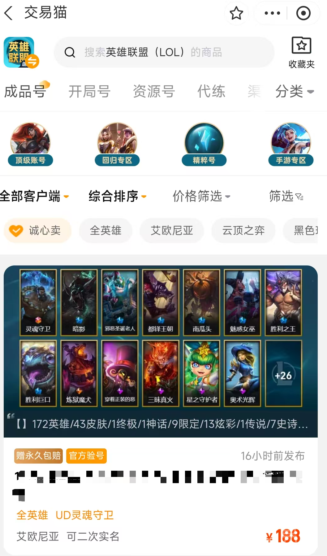 英雄联盟在出售之前很多玩家是不清楚账号价格的,那么就拥有一个精准估价的功能,只要玩家们能提供准确的区服以及大致的价格,平台内就会自动给出一个合理的价格,根据这个价格玩家们是很容易出售账号的,同时依托阿里巴巴灵犀互娱强大背景,以阿里官方背书筑牢安全根基,更坐拥业内独有的全场永久包赔服务,让交易全程无忧。平台精选正品好物,官方验号服务覆盖超 100 款热门游戏,逐一核验账号信息,确保验号结果真实、完整、准确,杜绝虚假描述。想要下载的话安卓用户只需要通过上方通过按钮下载,ios用户可以到官网使用哦。