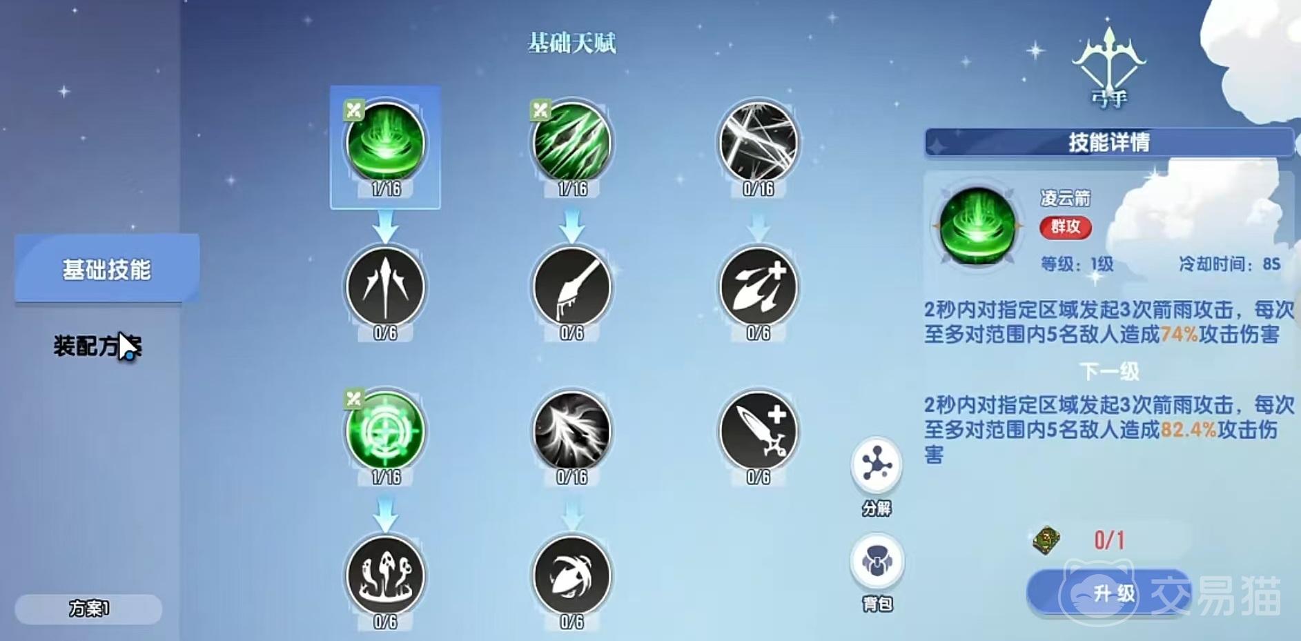 当前版本弓手共拥有五项主动技能:凌云箭、分裂箭、幻影突袭、淬毒箭与贯烈箭。实际战斗仅能装配其中四项,且存在严格释放顺序约束。每项技能均可通过强化系统提升等级效果,因此需结合场景需求进行策略性取舍。凌云箭冷却时间最短(2秒),具备中等范围伤害,在2秒持续施法期间可触发多次独立攻击判定;分裂箭专精前排单体目标,单次伤害数值高于凌云箭;淬毒箭作用于指定区域,造成即时范围伤害并生成持续3秒的毒素场,对静止型BOSS具备显著压制效果;贯烈箭为高倍率单体技能,附带1.5秒眩晕效果,推荐作为连招起手技,后续接淬毒箭扩大控制收益,再以分裂箭补足前排压制,最后用凌云箭维持群体压力。