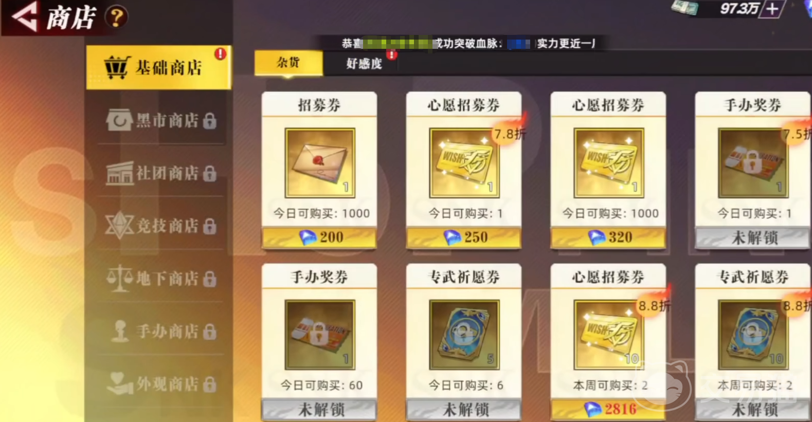 游戏初期仅开放基础商店界面,其中分为“杂货”与“好感度”两大类。杂货区所有物品均以钻石为货币单位,而钻石可通过日常任务、限时活动及充值获得。在众多可购选项中,心愿招募券具备明确的定向抽取功能,且常以折扣形式上架,是前期性价比最高的投入方向——它能显著缩短目标角色的获取周期,帮助玩家更快组建成型阵容。