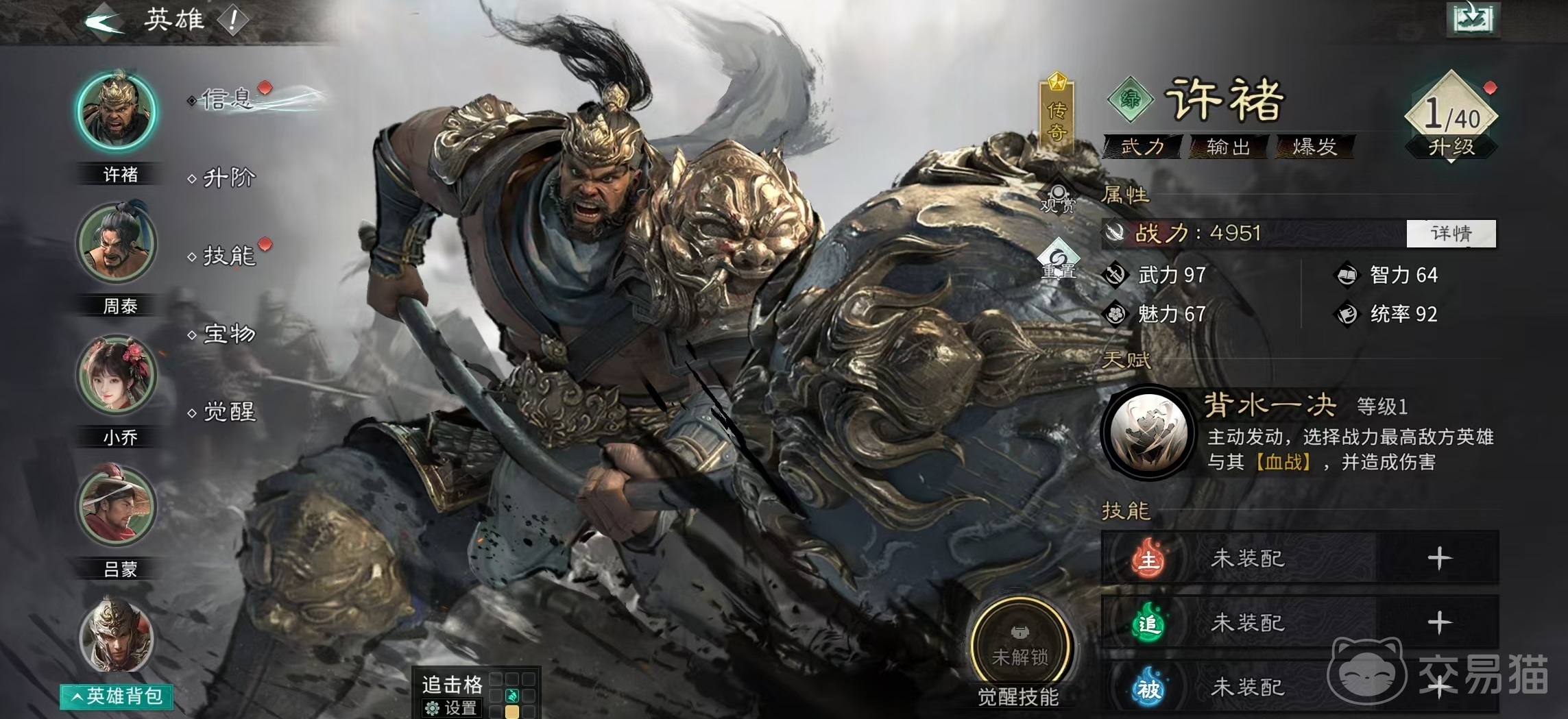 《三国天下归心》在武将机制设计上颇具创新性,采用“天赋 觉醒 自由技能搭配”三位一体的养成体系。每位武将拥有专属天赋树与觉醒技,其余主动、追击、被动技能需玩家自主组合,极大提升了策略深度与战斗多样性。本期聚焦高爆发单点突破流派——许褚点杀体系,以许褚为核心输出,辅以郭嘉、貂蝉构建稳定高效的斩首节奏。