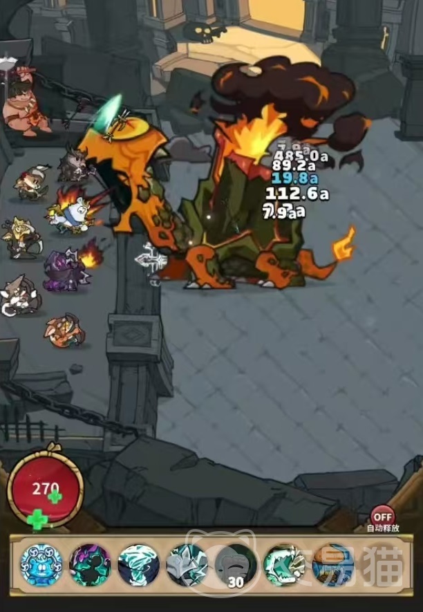值得注意的是,拉布布的主动技能伤害具有独特结算逻辑:不依赖虎女的增伤效果,不参与主动技能倍率加成,不受老虎平均最高箭等级影响,亦不享受鳄鱼被动或城墙远距离增伤加成。其伤害仅由所佩戴的箭等级直接决定。但可稳定获得闪电、刺猬两类增益效果,并能与城墙皮肤 沐波组合产生的眩晕状态联动,触发额外伤害加成。实战中推荐采用高等级猴子复制策略:将拉布布置于首格触发复制,随后切换其他英雄部署,以最大化其技能覆盖率。