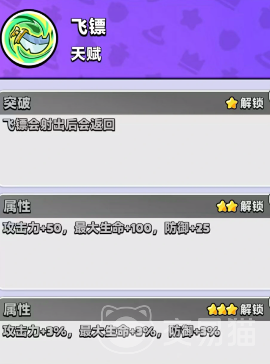 猫刺客在职业设定中归属游侠系,属性为风系,以高爆发、强机动性著称。尽管初始星级不高,但凭借合理的装备搭配与阵容协同,可快速成长为团队核心输出或功能型关键角色。其基础技能为“飞镖投掷”,自动锁定距离最近的敌方单位发起攻击;随天赋等级提升,“回旋飞镖”效果解锁——飞镖命中后折返,对路径上目标造成二次伤害;同时飞镖数量逐步增加,实现前排压制与后排穿透双重打击能力。