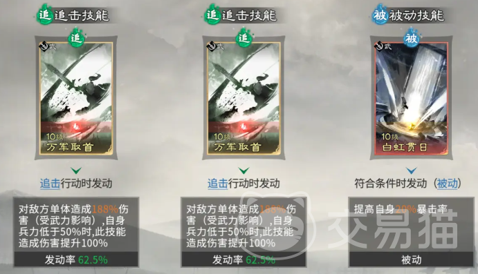 郭嘉定位为概率引擎型辅助,其天赋“10胜10败”可在达成条件后为全队提升技能发动成功率,显著增强体系稳定性。主动技能推荐“兵无常势”,专精于对兵力值偏低目标实施补刀,加速敌方减员进程,契合点杀流速战速决的需求。