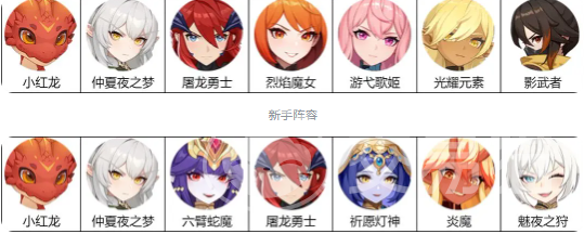新手期推荐阵容:仲夏夜之梦、屠龙勇士、烈焰魔女、游弋歌姬、光耀元素、影武者。该组合具备零门槛成型优势——所有成员均可通过主线流程免费获得。其中烈焰魔女在剧情初期即赠送,其群体伤害技能可快速削减敌方整体血量;影武者则提供稳定收割链,显著提升推图节奏。光耀元素与游弋歌姬分别承担治疗续航与团队增益职能,仲夏夜之梦补足持续输出能力。整套体系攻防均衡、容错率高,是前期开荒最稳妥的选择。