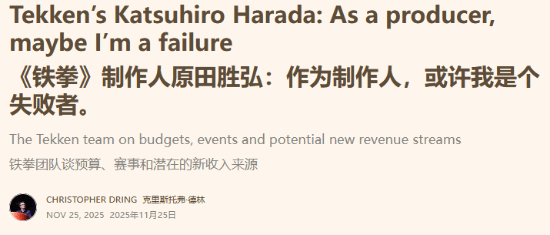 《铁拳》系列制作人原田胜弘近日接受了The Game Business的采访,在对话当中,他谈到了当今游戏业界不断上涨的游戏开发成本,并自嘲称从游戏制作人的角度来看他堪称“失败”。