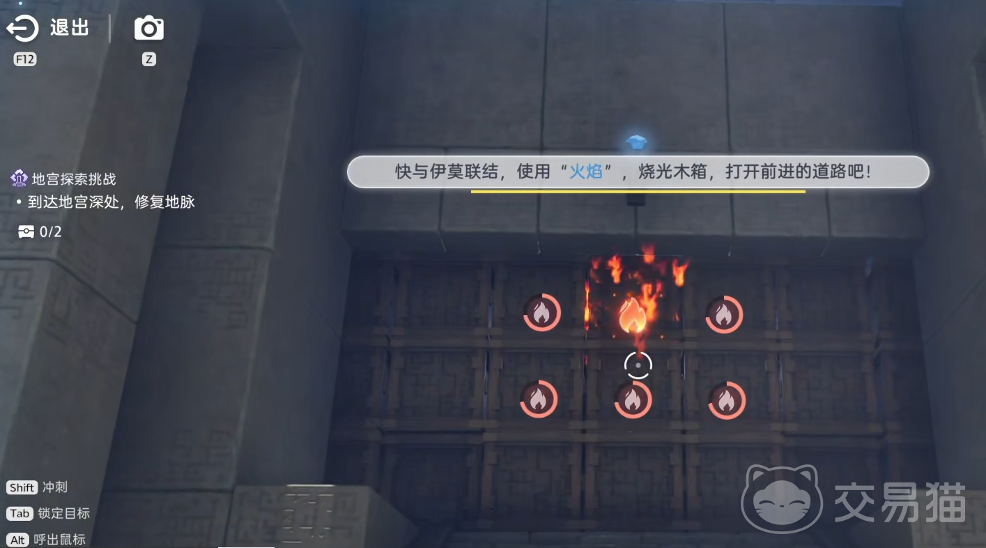 后续路径中将陆续出现需火焰清除的障碍物,均可通过联结技能快速处理。另有多处需物理位移的机关场景,利用环境中可推动的箱体进行配重或遮挡即可解决。例如前方存在持续漫溢的积水区域,将箱体置于压力开关之上,水流便会立即退去。最后阶段需定位出口位置,使用火球灼烧遮挡通道的藤蔓植物,清理完毕后即可发现隐藏门径,顺利抵达终点。