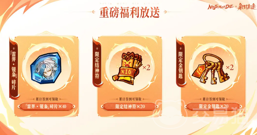 新春限时福利同步开启,活动周期为1月21日至3月4日。玩家完成连续3天分享任务即可领取联动角色【奔雷·银枭】;参与“共观雷动”签到活动,每日登录可累积获取【雷弈·银枭】角色碎片40枚、限定十连金钥匙等实用资源。