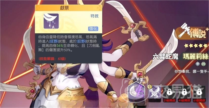 第三位推荐:蛇魔。作为典型进攻向战士幻灵,其特色在于“狂乱”状态下的攻速加成与生命吸取效果。进入该状态后,每次普攻均可按比例转化为自身生命恢复,形成越战越强的滚雪球式压制力,适用于需要高频输出与续航并重的持久战场景。