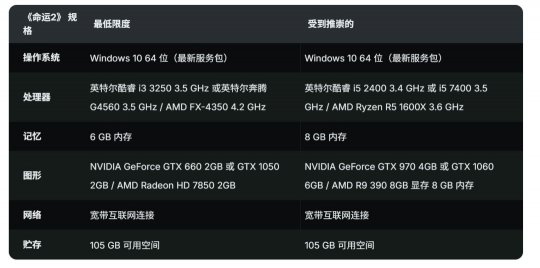 为此,外媒还对比了《马拉松》和《命运2》的PC配置需求(见下图),值得一提的是,《马拉松》采用的《命运2》Tiger引擎的升级版。