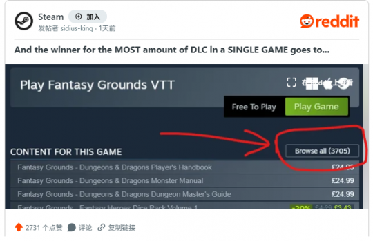 ·重点来了,《Fantasy Grounds VTT》的DLC大部分都是收费的,最贵的甚至超过100美元,有玩家估算了购买全部DLC的价格,竟然高达92587.95英镑,这下应该明白了官方疯狂推出DLC的动力了。