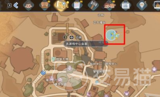 任务开启后,需前往沙石镇商会区域,与NPC艾尔西及米安对话。艾尔西主动提出一起娱乐,经协商后三人共同前往镇上的金天鹅游戏中心。游戏中心位置已在配图中标注清晰——请直接前往图中红框所示区域。进入后即开启打地鼠小游戏:每击中一只普通地鼠可获得5分,目标是在60秒倒计时内累计达成70分。