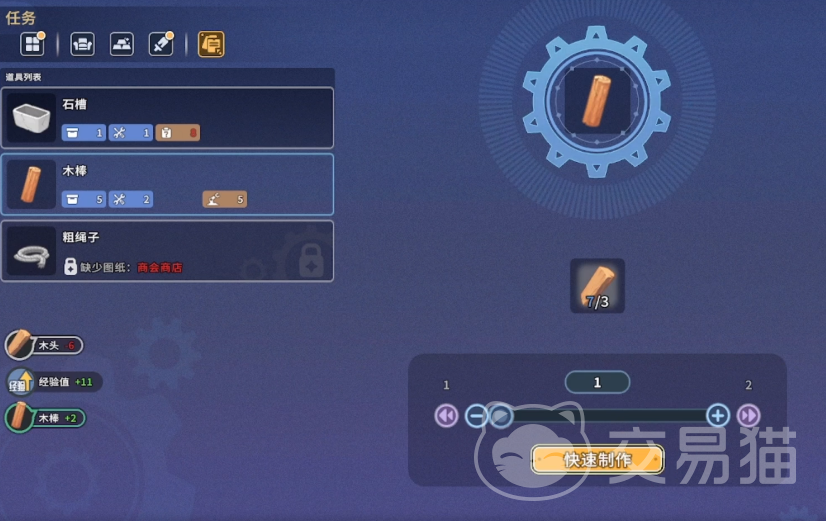 任务启动后,玩家将获得专属施工图纸。首要准备的是结构基材——石砖,共需32块。采集32块原始石头后,须投入熔炉进行煅烧转化;若石材短缺,可通过场景自由采集或废料回收渠道补充。同步需获取5根木棒,来源为砍伐树木或回收加工;此外,还需采集植物并提炼纤维,每24根植物纤维可编织成4根绳索,满足吊装固定需求。