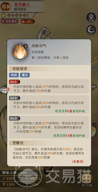 被动天赋【蝰蛇体质】提供阶梯式属性强化:基础形态增加25%攻击与15%生命;10星解锁后提升至35%攻击与20%生命;18星完全激活时可达45%攻击与25%生命加成。该被动不仅直接放大所有技能的基础伤害,还根据菲茨爵士当前生命百分比动态调节作战效能——在不同血量区间分别提供最高20%伤害增幅与10%减伤效果;当处于后排位置时,额外获得10%暴击率与20%暴击伤害提升。星级差异直接影响其战场适应性与容错空间。