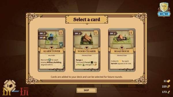卡牌构筑系统丰富,为你的争权夺势之路添砖加瓦。80余张卡牌带有各不相同的升级项目、助力效果,是你建造、强化建筑的得力帮手。建筑类卡牌和科技类卡牌可带来特定的额外奖励,提升征兵效果等,为你的前路解锁更多可能性。卡牌选择繁多,你可以根据自己的战术构筑卡组,促进领地繁荣发展。每局游戏期间,你还能在不同阶段与市场公会交易,换取有价值的资源,然后加以妥善利用,升级卡组,优化策略,选择下一轮的道路。