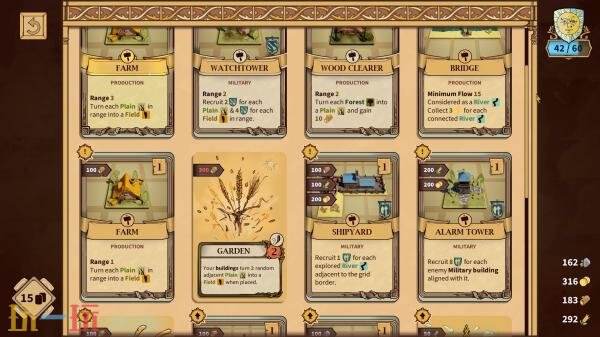 这里有丰茂的森林、奔涌的河流和萋萋草原,合理规划土地,在不同的地貌旁边建设最合适的建筑,才能尽可能发挥材料的效用,建设繁盛兴旺的公国。填满一行可以获得加成,不过游戏的终极目标是逐渐获得各类资源。有了这些资源,才能逐步壮大军队,抵御敌军,为国家竖起坚强有力的“护盾”。