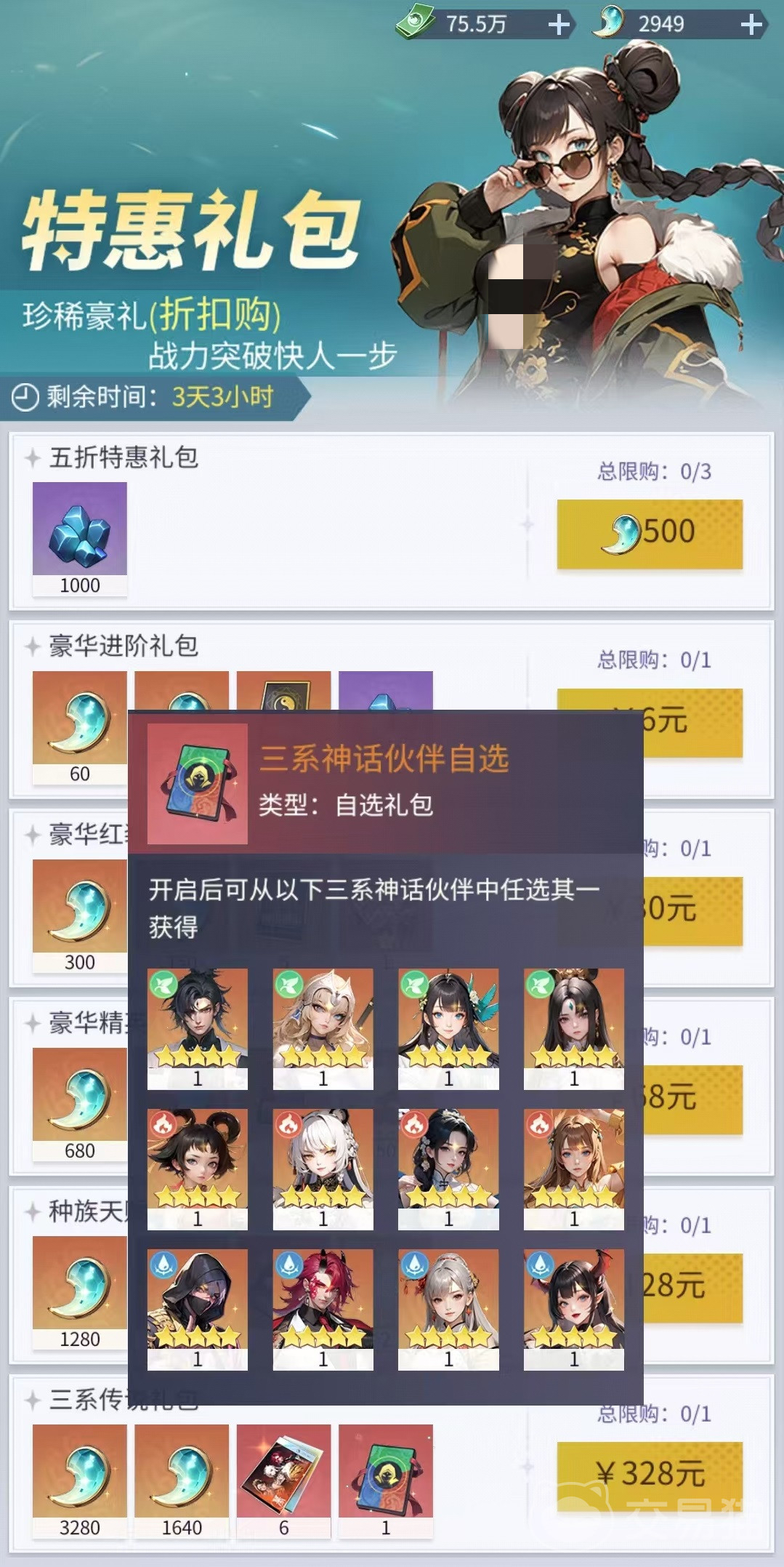 另一条确定性较高的获取路径来自充值回馈类活动:达成指定档位累计充值目标后,将获得“三系神话伙伴自选宝箱”一个。开启该宝箱可自主选定一名三系五星级角色,精卫即为可选项之一,适用于有明确培养规划的玩家群体。