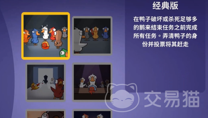 经典模式是游戏的基础框架。系统为每位玩家随机分配身份,包括鸭子、鹅或中立角色。鸭子需在不暴露身份的前提下完成暗杀;鹅则需通过执行任务、观察行为并发起投票来识别并驱逐鸭子;中立角色依据各自设定目标行动,如“叛徒”需同时消灭鸭与鹅,“幸存者”则须活到最后。该模式规则清晰、节奏可控,最低5人即可开局,最高支持16人参与,是新手熟悉机制的首选路径。