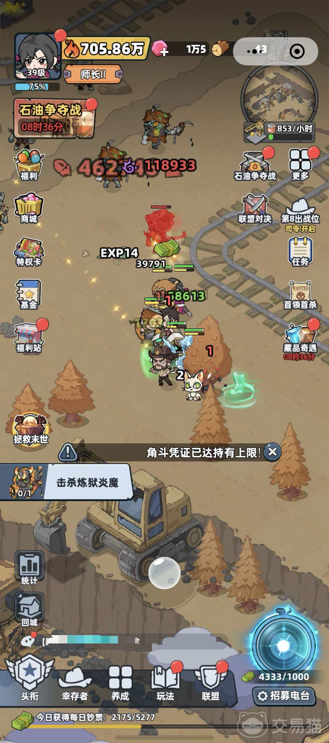 除木材外,游戏中另有多类基础资源构成生存体系支柱。罐头作为角色升级必需材料,可通过副本挑战、挂机工厂产出及击败敌人三种方式稳定获取;钞票则用于开启幸存者招募功能,完成全部初始幸存者招募后,升星所需碎片亦来源于后续招募行为;猫粮专用于宠物等级提升,其来源包括猫粮专属副本、宠物招募以及房间探索奖励,形成独立但联动的养成支线。
