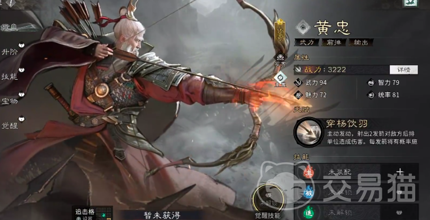 在《三国:天下归心》中,黄忠作为高爆发的远程输出核心,凭借其稳定的后排定点斩杀能力,成为众多玩家构建速攻阵容的首选武将。其定位明确——不争前排、专精后排,需通过科学的站位协同与技能机制联动,最大化“穿杨饮羽”天赋的战术价值。