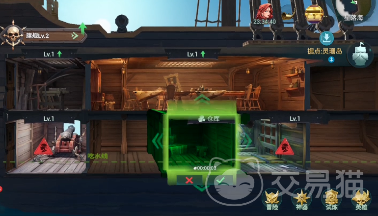 除战斗外,建造、贸易与探索构成游戏三大支柱玩法。其中,船员招募与船舱配置是海上发展的底层支撑。所有船舱均承担特定功能,且升级优先级直接影响整体发展效率。例如船长室直接关联指挥能力,升级后可同步提升航速与防御属性——更高的航速便于拓展地图探索范围,更强的防御则保障遭遇战中的生存能力。