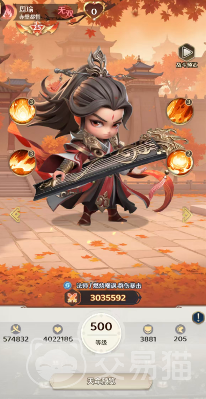 在《格斗三国志》中,周瑜作为高阶法师型武将,已达成红色无双品质,其战术价值在法系阵容中尤为突出。凭借独特的灼烧机制、群体控制与持续伤害体系,他不仅能高效压制敌方后排,还能通过多层状态联动构建稳定输出节奏。若队伍缺乏前排承伤或控场能力,周瑜亦能承担关键功能性角色,实现攻防一体的战术定位。