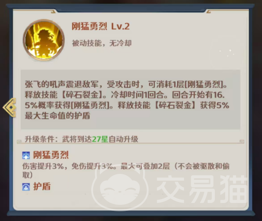 【刚猛勇烈】不仅是增益状态,更是行动节奏引擎:张飞受击时可消耗一层该状态,自动释放【碎石炼金】;回合开始时,有约16%概率直接获得一层【刚猛勇烈】;同时,每获得5%生命护盾,即可强化其前排承伤能力。多重机制共同推动张飞在单局中获得更多额外行动机会,尤其在一技能高频使用的前提下,前期快速叠满【刚猛勇烈】层数,将极大提升整场战斗的主动权与压制力。