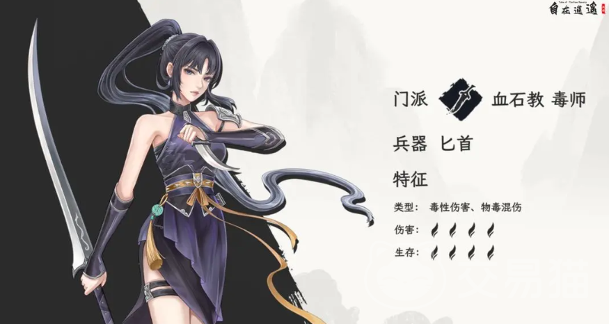 毒师为跨宗门职业,可择血石教或神农派任一路径发展:选血石教者,主修巫蛊之术,擅长施加中毒、减速、减防等多重负面状态,输出形式以持续伤害(DOT)为主;选神农派者,则侧重疗愈与增益,可在维持自身高生存的同时,为队友提供稳定治疗与状态强化。二者共用匕首为武器,兼具灵活位移与精准控场能力。毒师的核心价值在于战术协同性——无论单刷或组队,均能通过下毒削弱敌人战力,并以辅助技能提升团队整体容错率与持久作战能力,后期玩法延展空间广阔。
