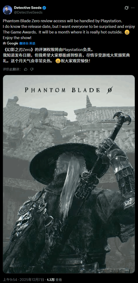 消息发布后,长期爆料索尼相关信息的业内人士@Detective Seeds进一步透露,他已经得知《影之刃零》的最终发售日期。“可以透露的是,那会是一个非常炎热的月份(It will be a month where it is really hot outside)。”结合这一信息来看,《影之刃零》发售日期很可能会定在2026年的7月或8月。