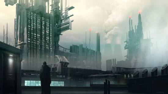 浓雾覆盖的茂密外星丛林和气势磅礴的未来主义巨型建筑交织在一起,暗示了一个内容丰富的世界。