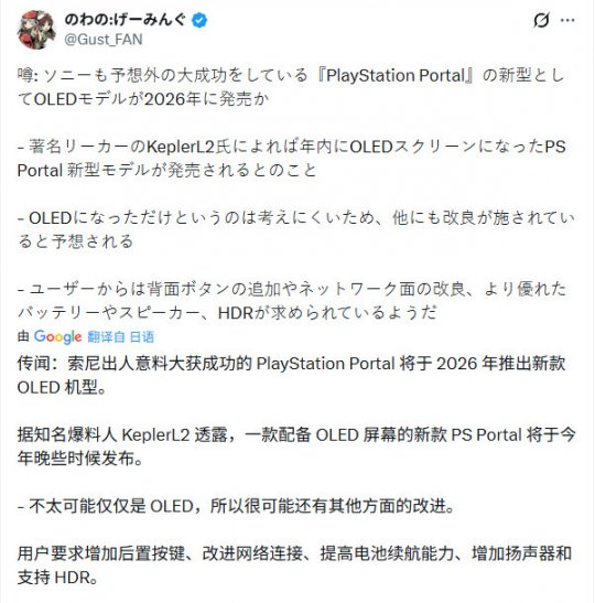 该爆料来自Neogaf论坛用户KeplerL2。在帖子中,Kepler首先提到PS6掌机将采用RDNA5架构,之后才谈到Portal。他接着表示,初代Portal “似乎很成功”,PlayStation正在研发“今年的另一款机型”。当被问及指的是哪个版本时,Kepler回答说:“OLED版本。”