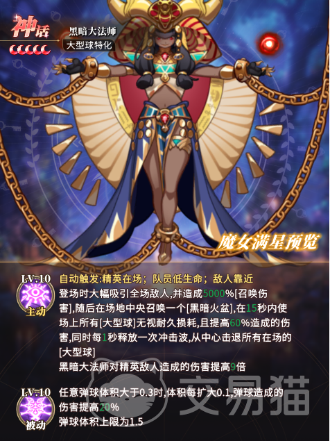 第二位为黑暗大法师。该角色具备全图聚怪能力,入场即施放5000%倍率召唤伤害,并于战场**生成持续15秒的「黑暗火盆」。在此期间,所有大型球将无视常规碰撞损耗机制,且每秒叠加60%伤害增幅;火盆同步释放冲击波,对全场大型球产生击退效果。其被动机制聚焦弹球重量参数:当弹球重量大于0.3时,每增加0.1重量,伤害提升20%。