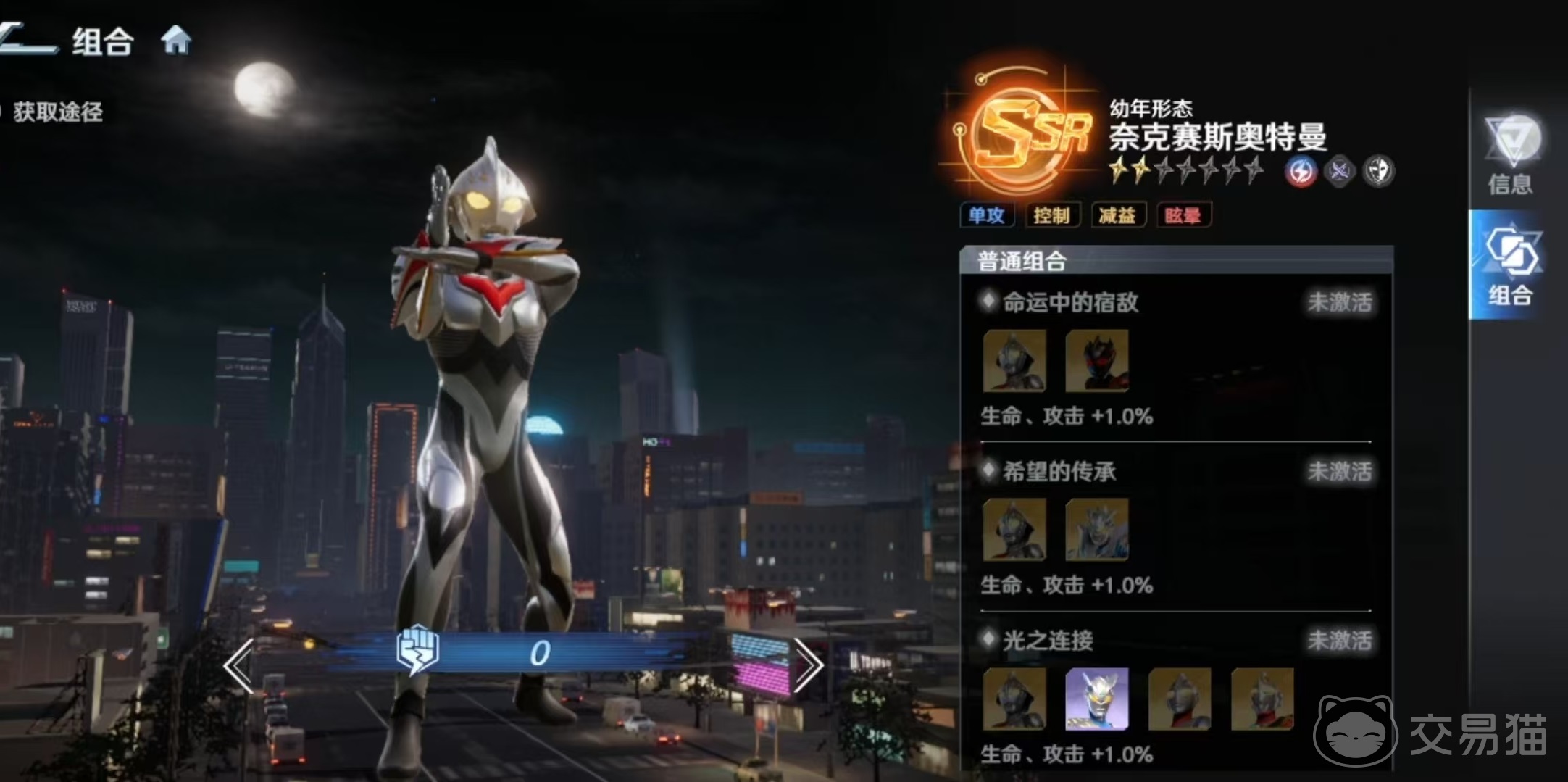 奈克赛斯奥特曼定位为单体爆发型战士,技能设计强调“命中即控”的节奏感。其被动效果明确:战斗初始阶段,自身所有技能的效果命中率提升20%。这一加成虽不直接增伤,却显著强化了后续控制链的稳定性,是支撑整套技能循环的基础阈值。在当前版本中,控制类角色普遍承担破防、减抗、衔接连招等关键职能,因此该角色在PVE高难副本与PVP针对性压制场景中均具备不可替代性。