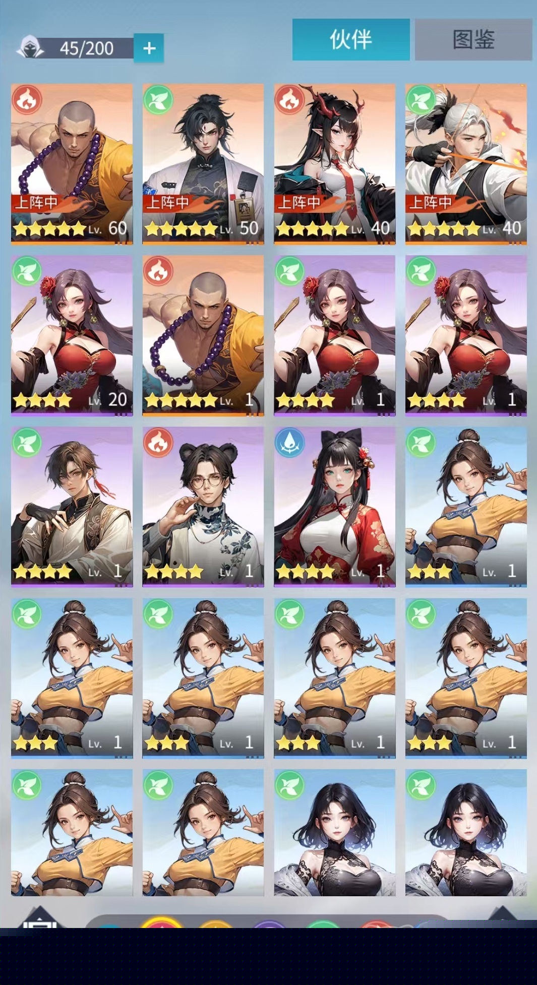 战斗系统基于自动回合制框架,深度嵌入五行相生相克机制,并划分五大阵营体系。角色属性中速度值为核心变量,直接影响出手序列;怒气积满后可触发专属大招。阵容配置强调策略维度——包括羁绊加成、连携技联动、职业职能互补及属性克制关系。尤其在高难度副本中,合理利用阵营克制与羁绊协同,远比单纯堆叠战力更为高效。养成路径延续卡牌品类成熟模型,支持升级、升星、觉醒等多维成长方式;辅以全自动挂机功能,支持快速作战与离线收益结算,确保资源稳定获取。