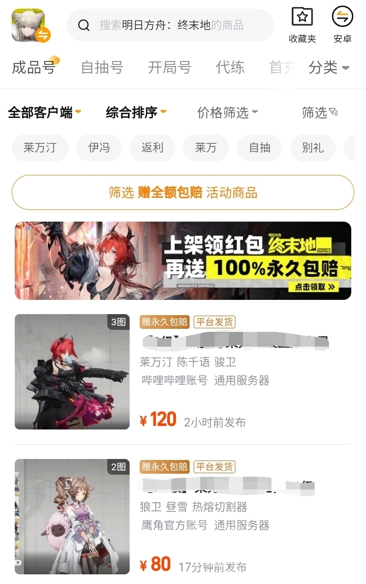 之所以很多玩家都选择使用购号,是因为平台上有非常丰富的账号内容供你挑选。毕竟很多人买号之前都会货比三家,可以在软件上通过价格区间筛选功能,选出心理价位的高性价比商品。还可以单选含有某个装备或者指定的角色的账号,根据价格顺序排列,逛起来非常有条理性,更加方便你寻得自己的心仪号。