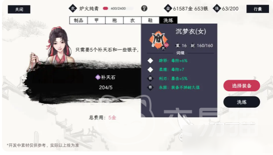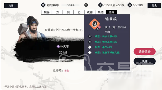 词条洗练需前往主城中的裁缝铺或铁匠铺,由对应NPC提供重铸服务。该功能允许玩家对已穿戴或背包内的装备进行词条重置,从而调整其附加属性。每次洗练固定消耗5枚补天石及一定数量银两,资源投入可控,适合中长期规划使用。