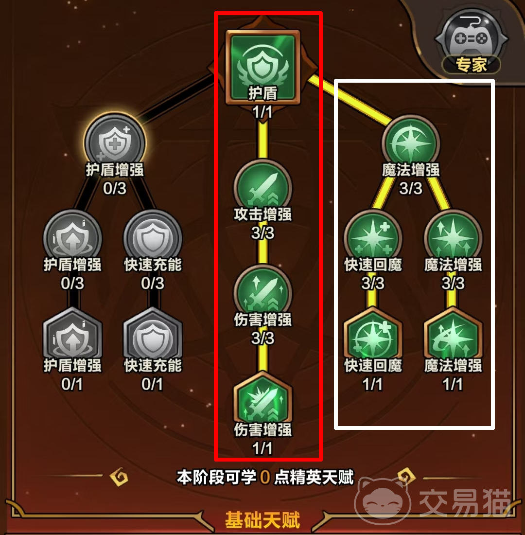 【专家操作】为独立激活型天赋,不占用常规天赋点,启用后可获得最终伤害 25%、最终受到伤害 50%的效果。该天赋对操作精度与走位意识要求较高,建议前期暂不启用;待角色成型、技能循环熟练度提升后,再视战局需求开启。冲击高难度副本或竞技排行榜时,此天赋为关键输出增幅节点,必须启用。