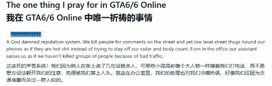 有玩家表示沉浸感非常重要,希望Rockstar能在细节上多下功夫,让玩家深切感受到这个虚拟世界的“真实感”。