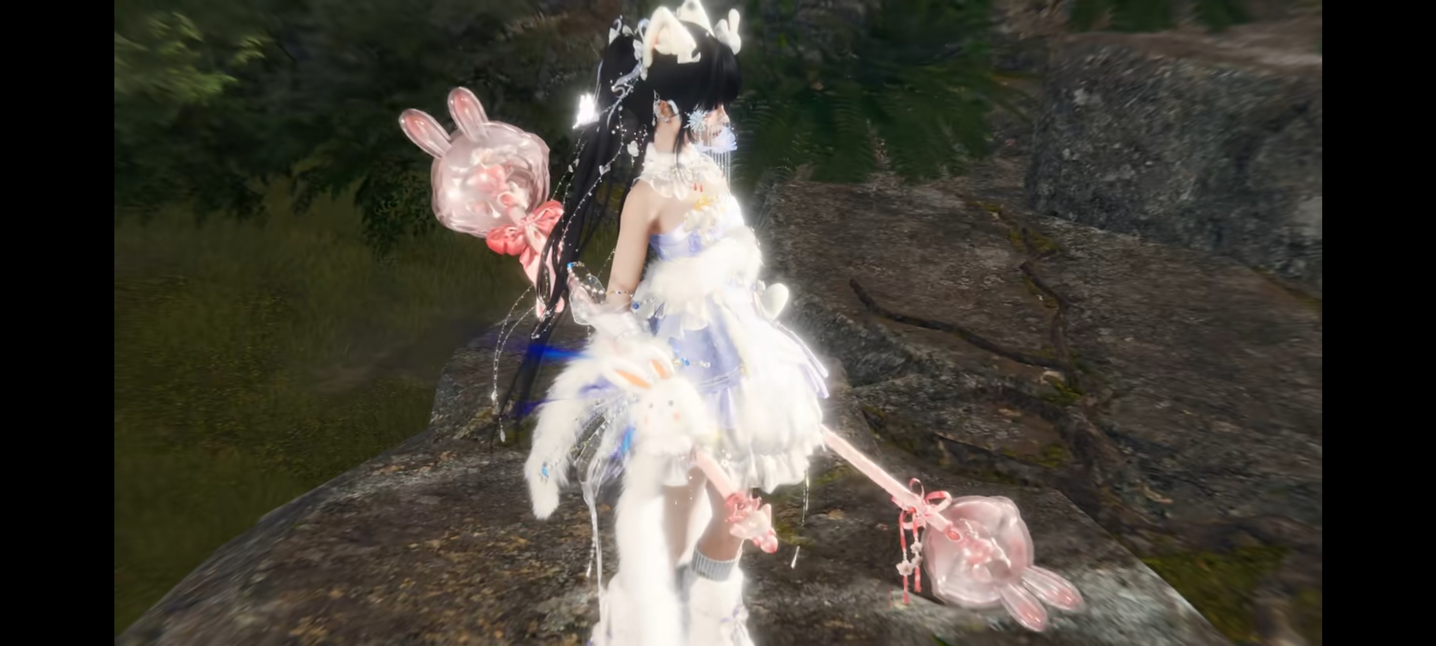 最终获得的甜品武器外观十分可爱,以粉色兔子造型为主,搭配角色的白色萌系服饰,在游戏场景中展示时极具观赏性,技能特效也充满了甜蜜的风格。