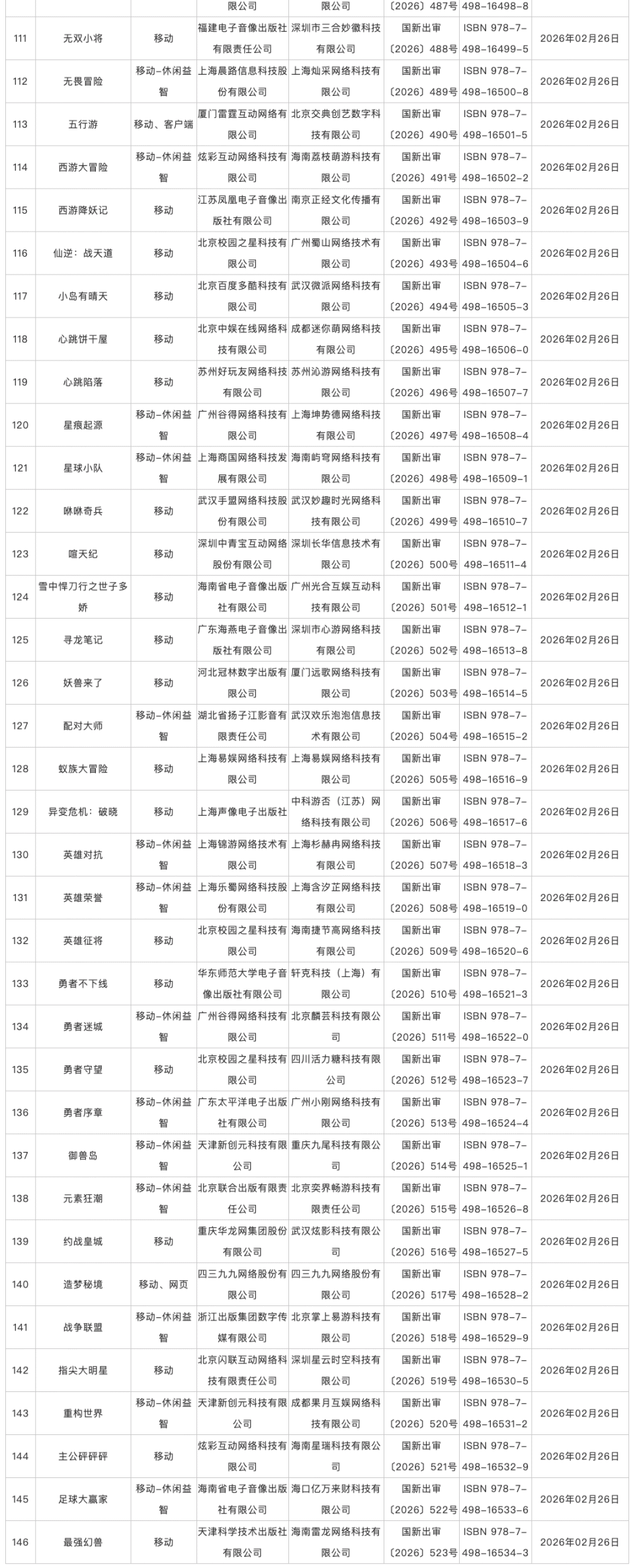 2026年2月网络游戏版号审批发布:146款国产游戏获批,6款进口游戏过审核