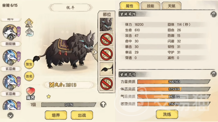 牦牛为高原专属肉盾型灵宠,仅限高原地图获取。其基础定位为高耐久前排,具备优秀抗压能力与冲撞类物理输出技能。除战斗用途外,牦牛掉落物在后期融合系统中具有重要战略意义,可用于多层级资源转化。部分高阶玩家会将其作为麒麟融合路径的关键材料之一,通过特定融合规则,最终解锁四大神兽之一的麒麟形态,从而获得质变级战力跃升。