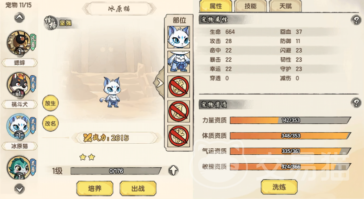 玄凛鹿属性侧重防御成长,在面板数值中防御值明显高于其他维度。该灵宠常见于前期资源积累阶段,主要价值在于稳定产出鹿角——这一关键合成材料广泛用于装备强化与技能升级。由于其战斗定位单一(纯前排承伤),且同类功能宠物选择较多,多数玩家倾向将其作为材料来源而非长期出战伙伴。若需临时补位坦系单位,可启用玄凛鹿,但不建议投入大量养成资源。