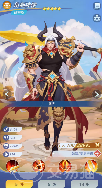 核心主C推荐角剑神使——其主动技“破军”可对全体敌人造成100%物理伤害,且伤害值的5%转化为自身生命;该效果随角色成长提升至140%伤害,并同步将45%伤害值转为生命回复,同时削减目标25%怒气。此机制不仅强化持续作战能力,更具备显著的怒气压制作用。被动技“天神下凡”在生命低于50%时触发:清除全部控制与负面状态,恢复20%生命,并进入“持铭剑神”状态,期间提供全队圣光系单位“圣光号令”增益,同时自身常驻20%伤害减免,极大提升团队容错率与续航稳定性。